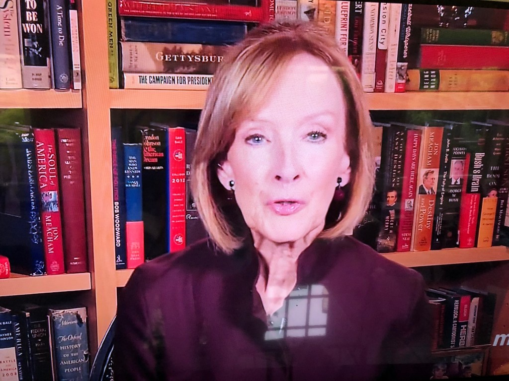 It’s possible she and Lisa Desjardins have shared lip gloss tips. That would shock me, but the shade and glossiness level look familiar. I do not plan on commenting herein on Lisa’s outfits, because she’s strictly junior varsity to Judy’s varsity at this point. Lisa looks at Judy so adoringly that I feel sure she will pick some fashion tips up from her mentor.