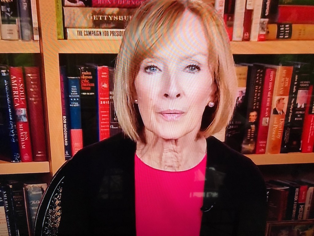 You’re right! There are four: the earrings for today’s show are pearl studs; 5/14’s were drops. Today’s black layer looks like an unstructured cardigan, while 5/14’s was a tailored jacket. Today’s red shell is more cherry-forward, while 5/14’s was more to the coral. Bonus points for recalling that today’s flowers were the faux white ones from pre-5/14. 5/14 had fresh.