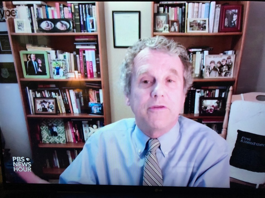 The top is Republican Senator Pat Toomey from the great state of Pennsylvania. The bottom, Democrat Sherrod Brown of Ohio. Was it the crammed Office Depot-issue shelves in the basement that gave Sherrod away? The pilled First Amendment pillow on his sad rocker? The self-cut hair? Or did you spot the thin-lipped, purple venetian blinds-backed, tailored real curtains in the Capitol that tipped Toomey’s hand?