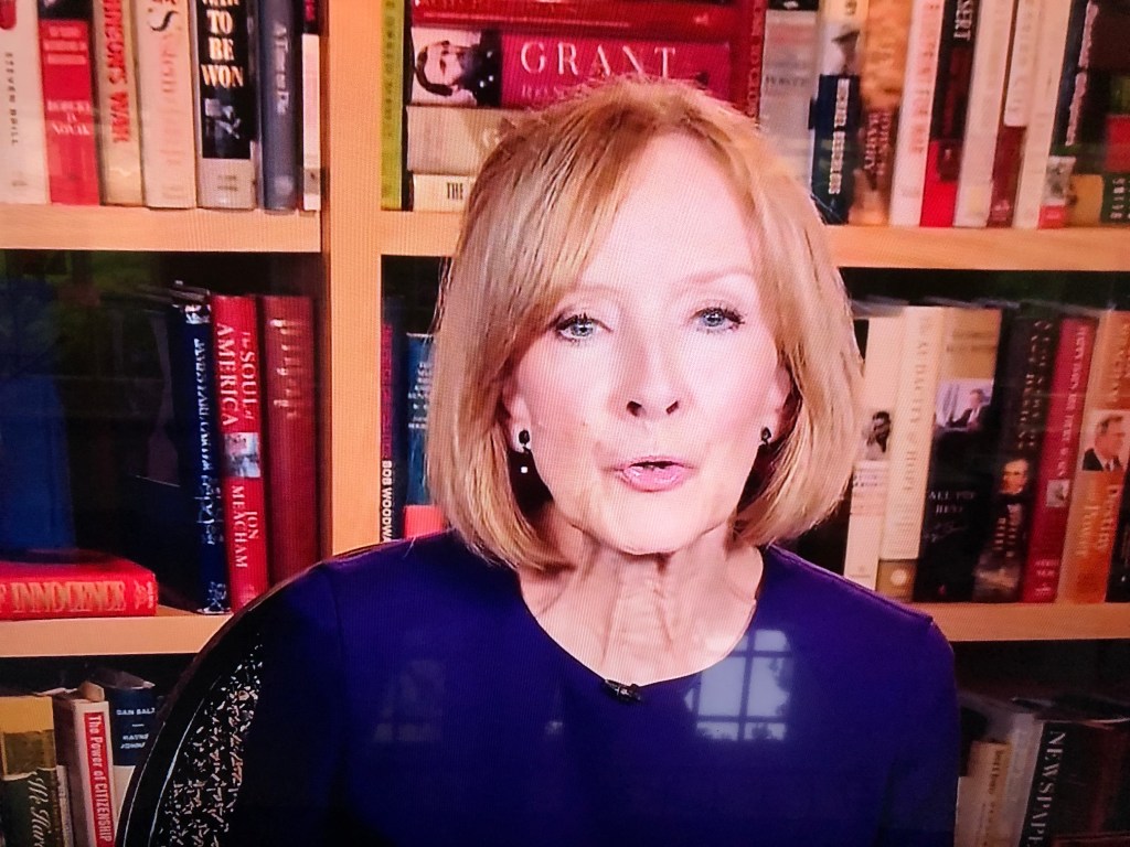 Judy looks good tonight. I guess she put on the a/c because she’s back in long sleeves. This shade of blue works with her current hair color and those lovely eyes.