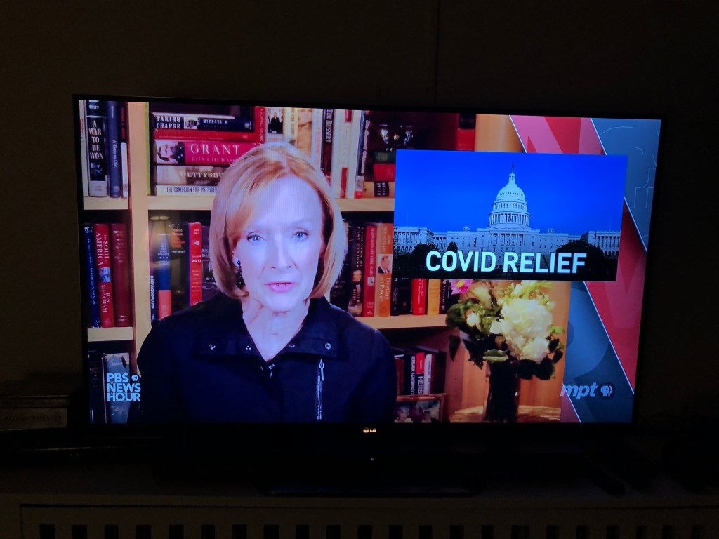 Judy was “away” Monday. Huh. I don’t recall being asked to sign her field-trip permission slip. I’m also miffed that the NewsHour has not reverted on my question about Judy’s famous cherries/Lucille Ball/flower motif dress. I’m sure it must be in my spam folder.