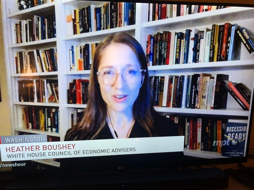 Heather Boushey was not shy about product placement for her book, Recession Ready. Always fun to play “spot the pimped book.”
