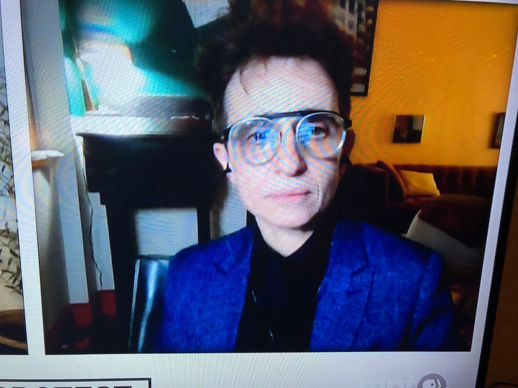 Holy cow. This image alone was worth the whole hour. What if those aren’t frames but a unibrow? The New Wave decor is right in line with the hair and fashion picks. There is a light illuminating only the corner of the painting behind him. Choice wall color. Unfortunately, I didn’t get it in the frame, but there is a tiny picture about three feet up on the far right of the couch. I give Masha props for going whole hog ’80s though. You don’t see that often.