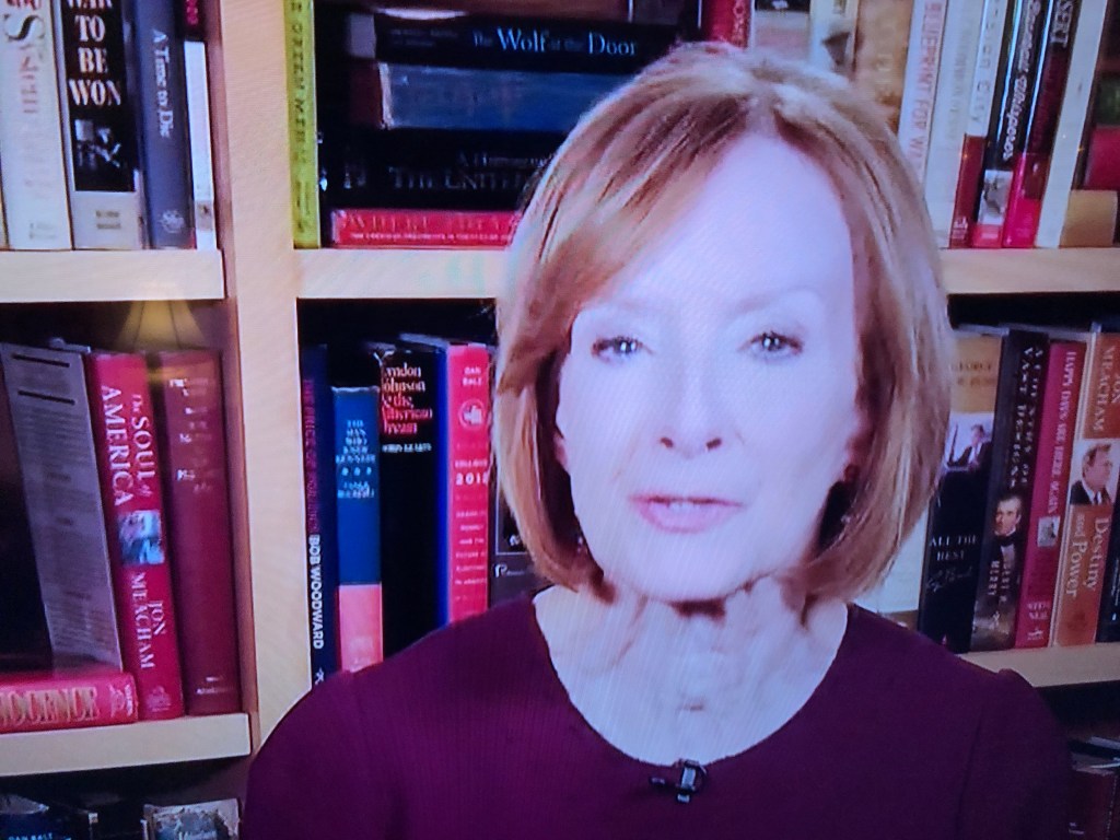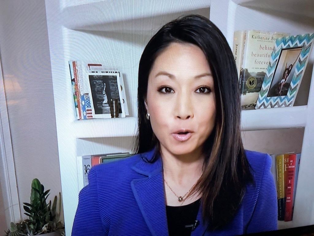 Yamiche is giving me nothing to work with. She’s wearing that holey top again. I SAID black is not the color that suits her best. The room behind her hasn’t evolved further, either.