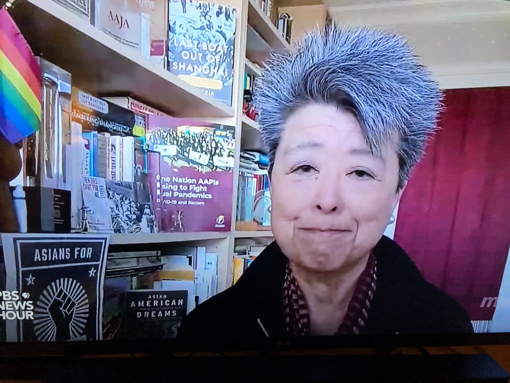 Absolutely shameless book-plugging by Helen Zia: Last Boat Out of Shanghai and Asian American Dreams carefully positioned on her bookshelves. She hogged all the airtime in what could have been a strong segment on discrimination and beatings of Asian Americans in the US.