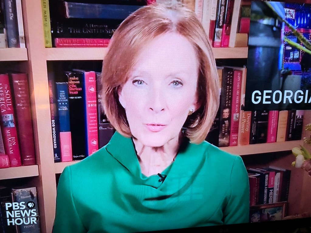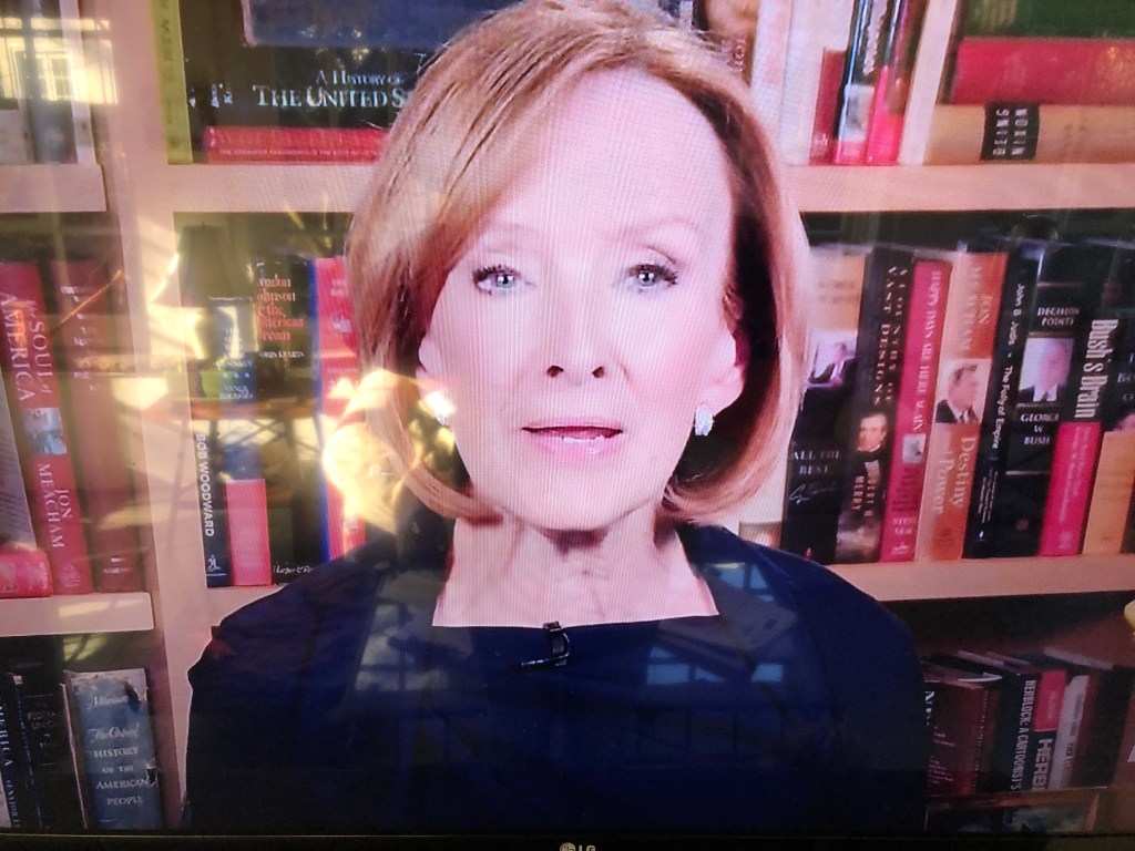 I give the nod to Fred de Sam Lazaro, caught snoozing on cam below. He has looked like a hot mess in the field (wouldn’t a comb fit in his flak jacket?), but he looked dandy at home. I like the matte eyeglass frames.