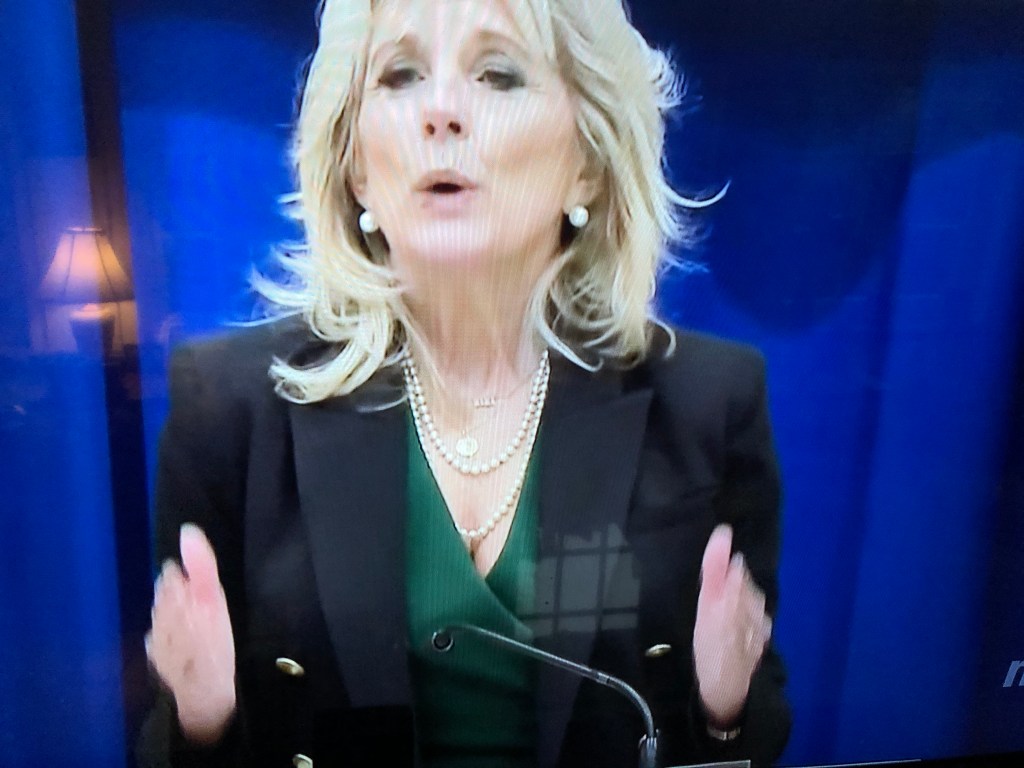 1. Jen Psaki looks good in red! Also that neckline is great. I am relieved that she is covering up a bit. Some of her necklines have been waaaay too low for delivering White House press briefings. And this brings me to Jill. She has a dynamite figure and can totally pull it off but this décolletage makes me think about her upcoming date night and really I do not need that image. Has the staff not gotten around to unpacking the camisoles?