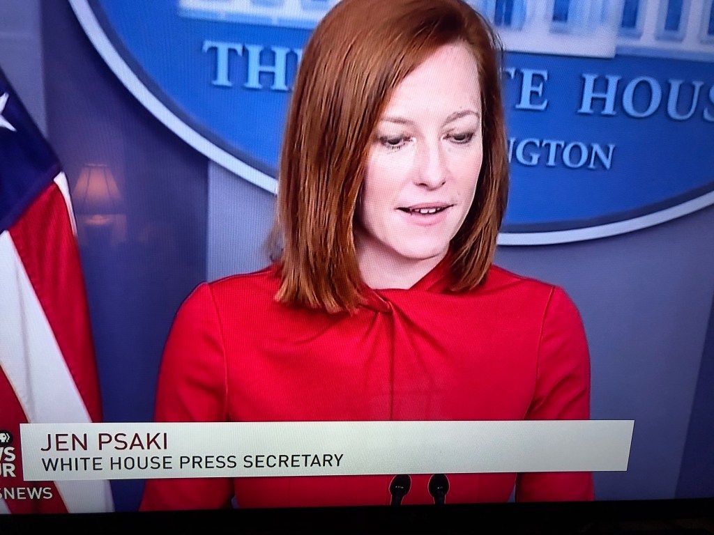 Psst, Jen Psaki, I thought redheads weren’t supposed to wear red? You look adorbs anyway.