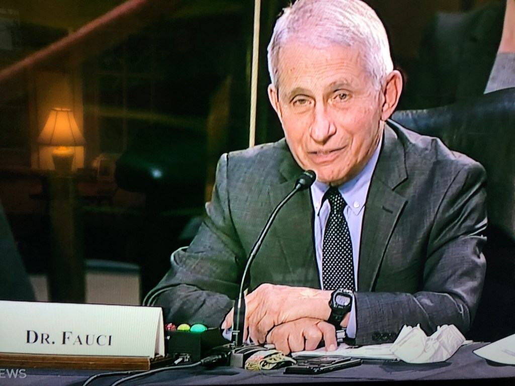 Anthony Fauci is a style icon in so many ways, here sporting a G-Shock watch, the coolest and toughest digital watches out there. No Rollie for this man.