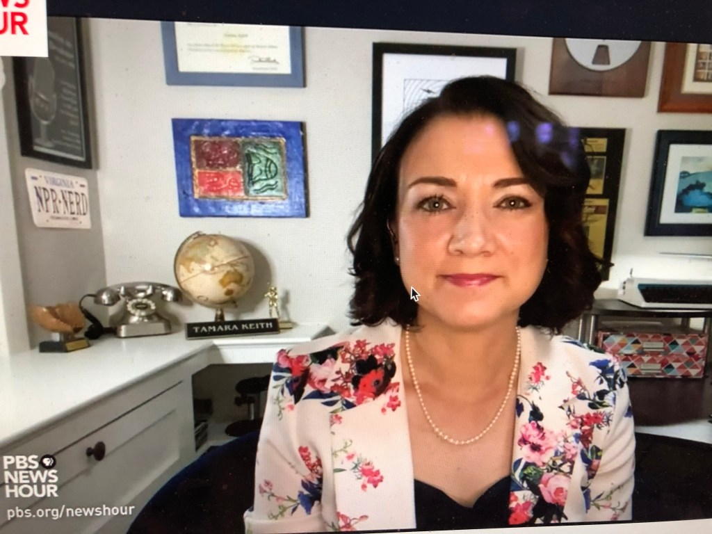 Alert reader Nancy implored me to take a gander at Tam’s showing this week. Wowee! She nailed it! Love the little sweetheart neckline (please someone tell me that’s not a bustier on PBS) and the floral jacket looks just right with that graduated pearl necklace. Way to go! Thanks, Nancy!