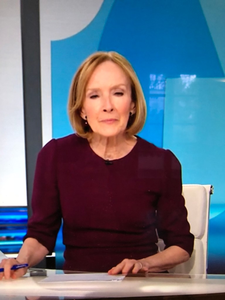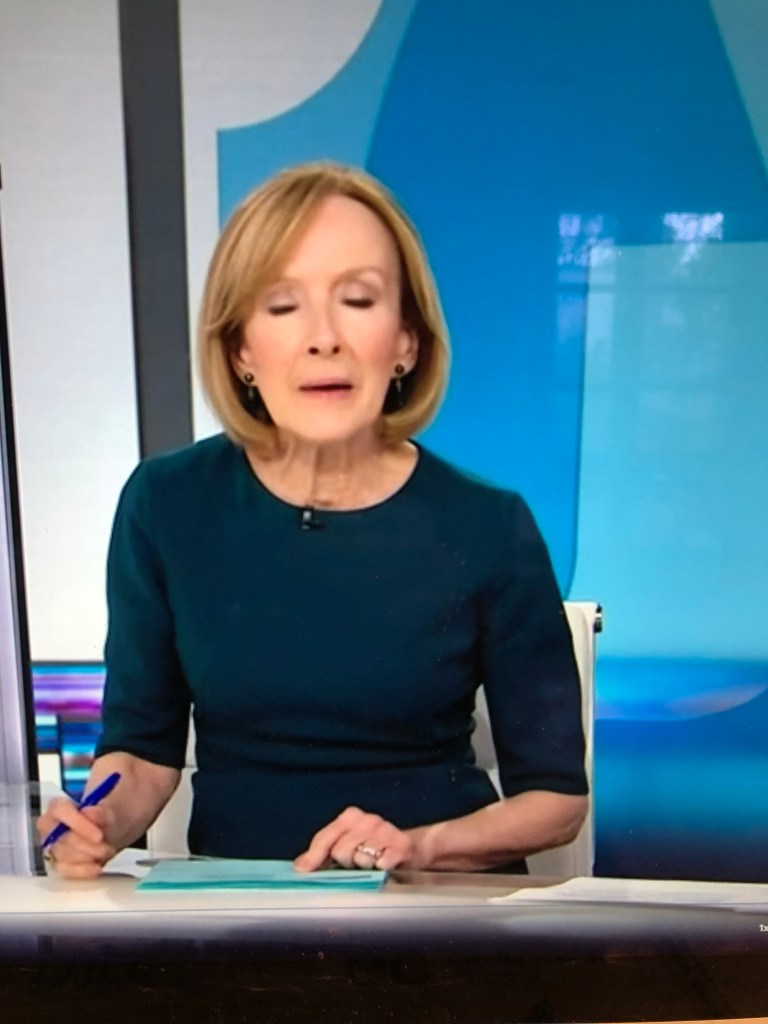 Amna’s looks continue to delight. She appears to know that dusty rose is one of her colors. Nice blazer and shell combo.