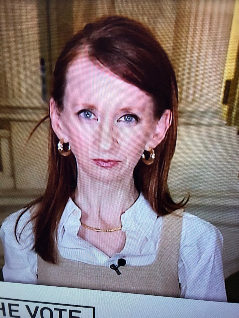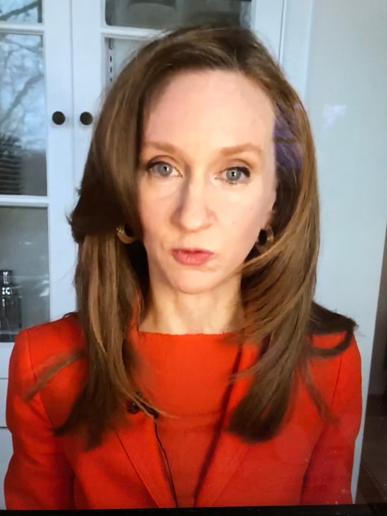 Is it Covid that keeps her from getting a haircut? ABOVE THE SHOULDERS, I say. Her face is long, and that’s ok, but the length of her hair makes it look REALLY long, almost like this: