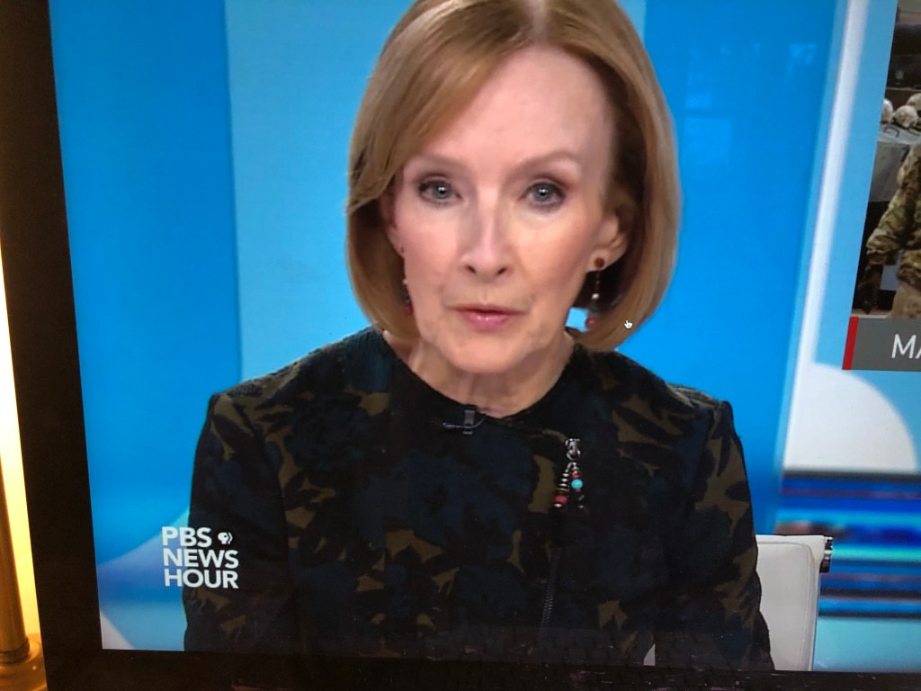 2. I thought the black outfit yesterday looked almost funereal as on TV you can hardly see the brown florals.The pin looks to me like Arizona Navajo jewelry.Liked the green outfit very much. Th winter white was ok but a bit of color would have helped. I would like to see comments on Stephanie Sy’s fashion.