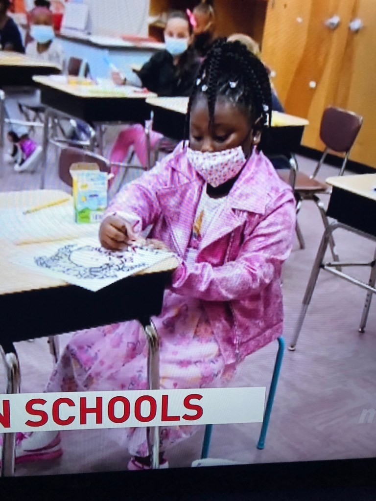 The fashion standout on Monday was not Judy or her typical supporting cast. It was this little girl in the photo accompanying the story on masks in schools: