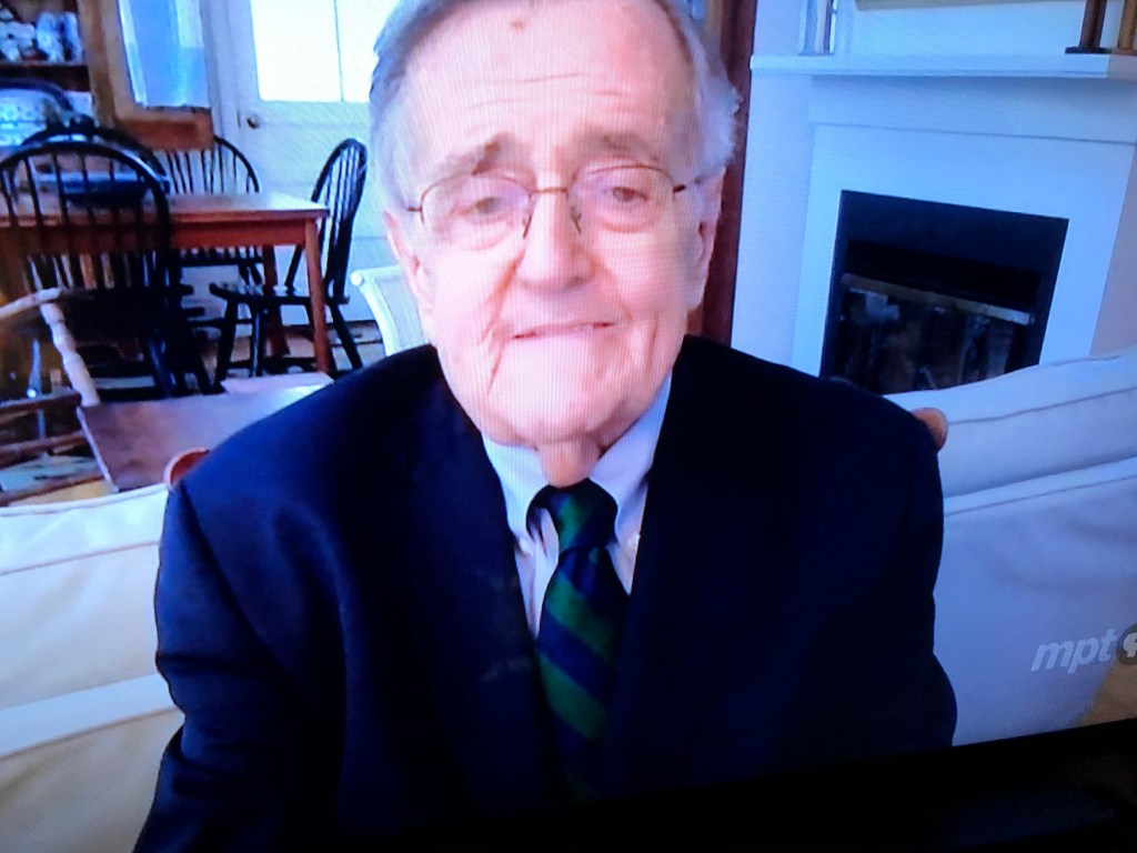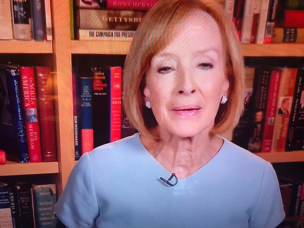 I hope all will be right with the world by then, with Judy in front of her bookshelf, David Brooks in his Willy-Wonka-striped room, and Mark Shields still relegated to his closet.